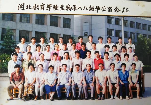 河北教育学院生物系88级毕业留念。第二排左数第一个是我。