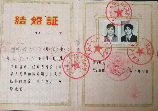 1987年腊月初几儿,我和我媳妇手中拿着各自的两张黑白一寸照片,走进小子庄乡政府办公室,在那里登记结婚。由于工作人员与我媳妇是同事,没有为难我们,没有硬性要求我们必须提供我们二人的合影照。他将我们两个递上去的黑白一寸照片,两张两张地对接起来,粘贴在了结婚证的适当位置上,完后就在两张照片的接缝处、边角处,实实地压上了几个印章,我与我媳妇的两张一寸照片从此成为了一张紧实的合影照,我们两个也从此成为了夫妻,成为了能够相互托付终身的人。