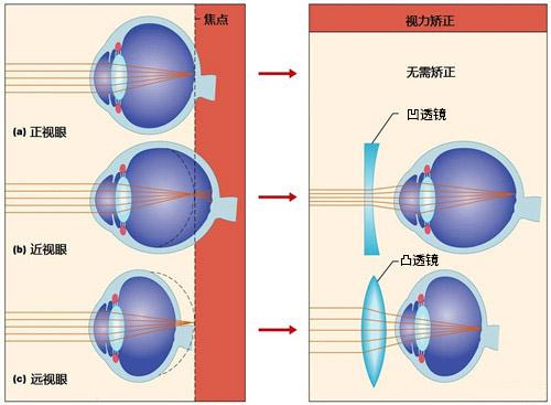 Tips:近视是屈光不正的一种。当眼在调节放松状态下,平行光线进入眼内,其聚焦在视网膜之前,这导致视网膜上不能形成清晰像,称为近视眼myopia。