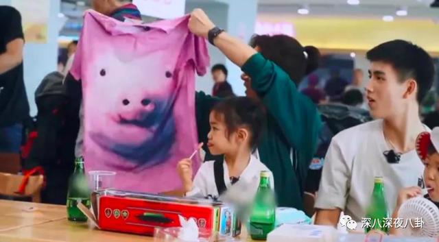 再比如lucky买了件粉红色猪头图案的T恤回来,其他嘉宾都起哄让小李穿,当时他还一脸婉拒。