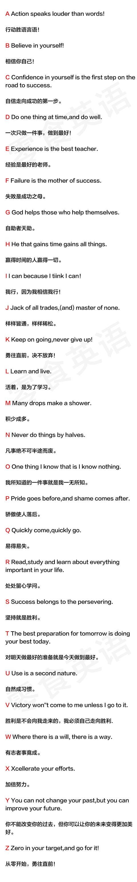 人一天的能量始终会消耗殆尽,意志消沉,有励志就有动力,26个励志英语句子,从A说到Z,总有一句能够鼓舞你!