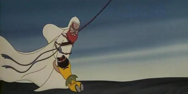 天书代表着真理,真理总是会流传到人间,袁公是真理的一部分。但是天庭希望把法术独享,严加看守。电影给了这个舍身求仁的悲剧结尾一个克制的处理,袁公被铁链绑回天庭后的遭遇可想而知。我们不知道蛋生还能不能再上天救师父,却被这对师徒心怀大义的胸怀感动。