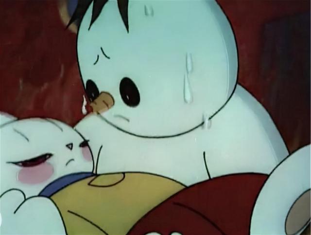 1980年,中国的动画片就有过大白。《雪孩子》讲述了一个爱和死亡的故事。兔妈妈害怕小兔独自在家孤独,做了一个雪孩子陪伴小兔,雪孩子和小兔一起跳舞,手拉手滑过森林,建立了难分难舍的友谊。