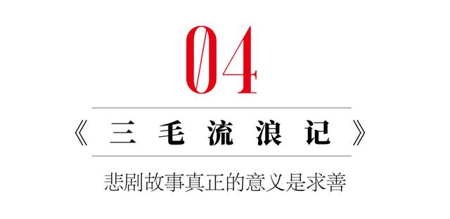小时候我们看懂的是故事,长大后我们回看的是有具体的人在承受的一段历史。《三毛流浪记》展现的是黑暗面,但是却并没有宣扬这种黑暗。悲剧引起的恐惧与怜悯,它真正的意义是求善。人性的恶越是被展露,孩子们心中对善的追求越能被激发。童年对一个人的影响是深远的,它带给孩子们对复杂世界的苦难更多层次的理解力。