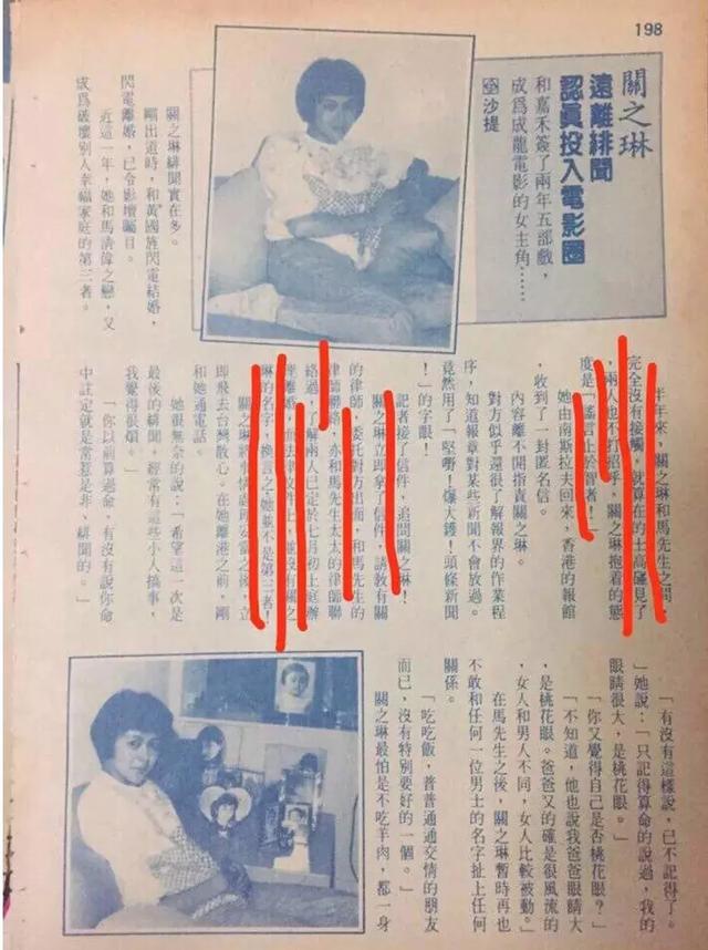▲对于插足马清伟和陈美琪一事,关之琳在1985甚至非常气愤地公开写下“我没有勾引马清伟”几个字,这件事闹得满城风雨,之后,关之琳就以疯狂的工作来远离绯闻,不久之后,大刘也出现了,那时的她,工作机会多,追求者也多,所以和马公子很快就散了。