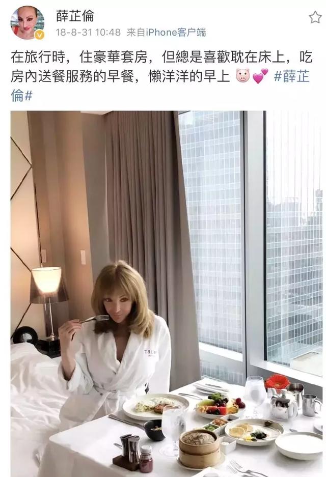 ▲豪华套房、落地玻璃窗、浴袍、床上brunch,薛芷伦的生活正是小红书网红们梦寐以求。