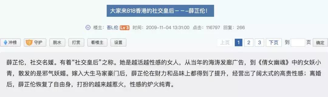 ▲在那个没有公众号的年代,古早的天涯论坛很早就曾经八过这位香港社交皇后。
