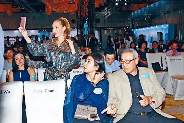 ▲马清伟应记者要求和长子合照后,只顾和女友Winnie坐在前排,前妻薛芷伦则在后面玩自拍。