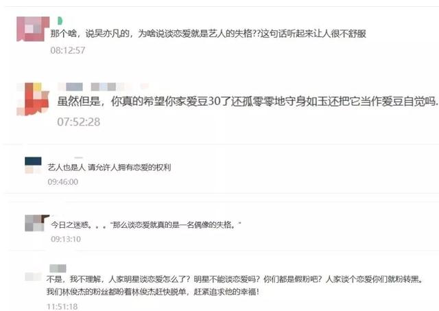 这句话遭到了一些读者的驳斥。他们认为,都2020年了,为什么艺人不可以有谈恋爱的权力?粉丝因为偶像谈恋爱而脱粉,是一件极其可笑而畸形的事情。一些艺人30多岁还没有绯闻,更不是一件值得骄傲的事情。