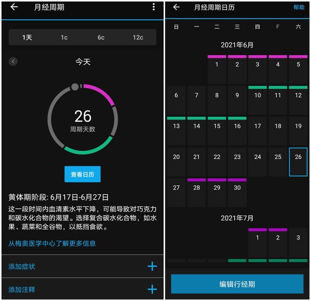 女生每个月的那几天都很需要关心,Venu 2S也充分考虑到了女性经期和孕期的情况,在App和手表上它可以帮我跟踪生理周期,可以提醒我排卵期、黄体期还是安全期,甚至还可以跟踪经期流量,以及经期护理,可以说相当贴心啦~