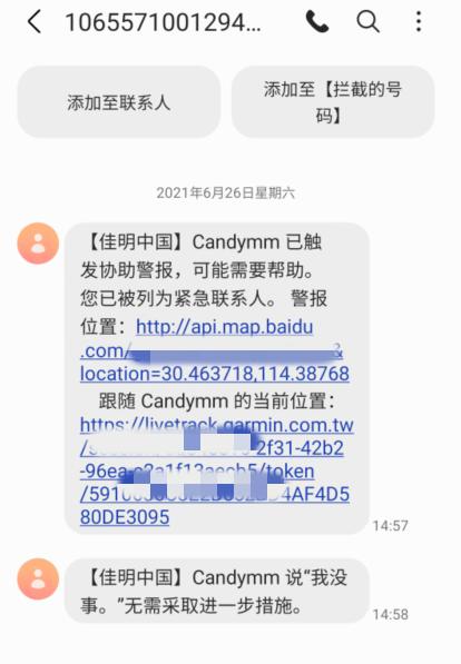 于此同时紧急联系人就会收到你发出的求救短信。在确认安全后,你也可以在腕表上告诉对方自己已经没事。