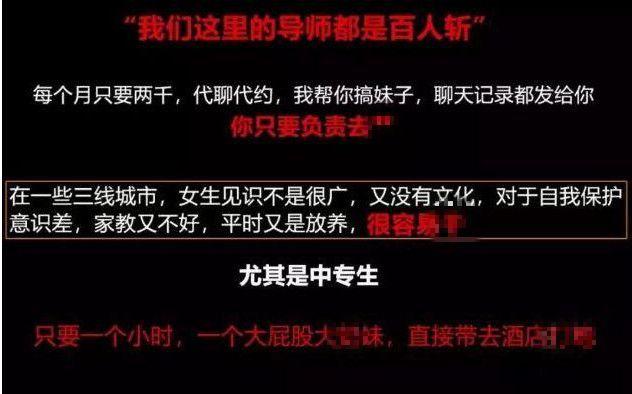2018年6月,《南方都市报》等媒体曾披露不良PUA的邪恶真相:越来越低龄化,将女性私照当“战利品”,宣传语不堪入目……正在向未成年人渗透。