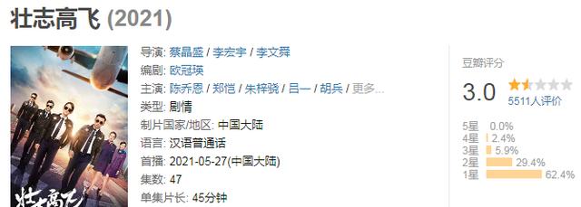 倒数TOP01:《壮志高飞》,青春励志剧,47集,豆瓣评分3.0。