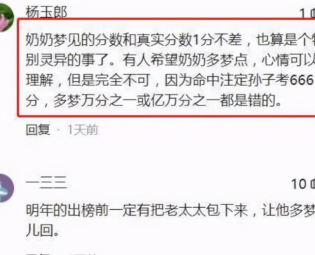 这样的梦结合考生的分数,简直是太完美,很多人的关注点都在奶奶的梦上,觉得奶奶的梦很是厉害,却忘记了学生是怎样的日夜熬过来才得到的分数。