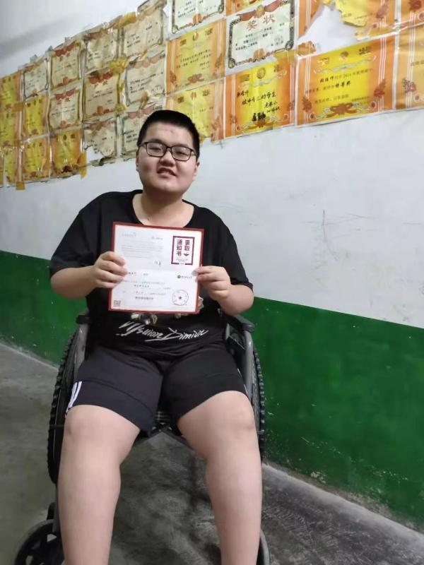 7月23日,镇平一高“轮椅少年”张浩仟收到来自北京理工大学信息科学技术专业录取的通知书,手捧这用汗水浇灌、用心血滋润的通知书,激动而幸福的泪水流淌下来。“付出总有收获,谢谢学校领导、老师和家长的精心培育,才结出了今天的丰硕成果。”