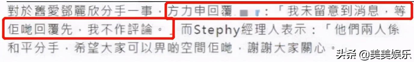 外界有传闻猜测是因为方力申迟迟不肯结婚,导致邓丽欣无奈提出分手。