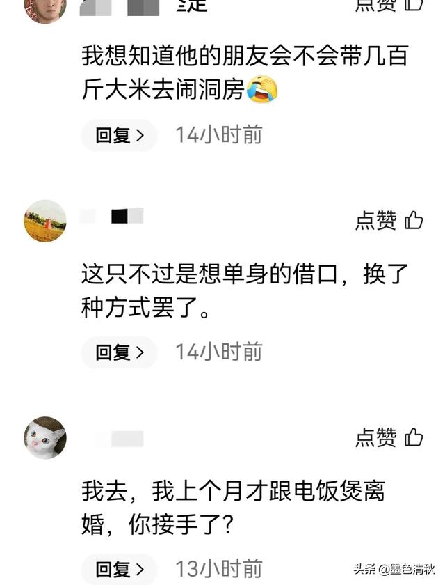 正在一片嘲讽和看热闹的劲头还没来得及收场,男子又爆出“离婚”的惊天新闻,因为妻子“电饭煲”只会做饭!这理由合适!