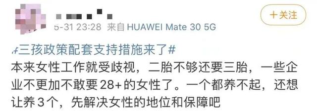 还有网友表示,对于大多数职场女性来说,生三胎=间接失业!!