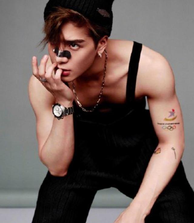 最近拍时尚大片,被大家发现胳膊上有五环纹身的王嘉尔,确实对运动赛场有很深的眷恋。
