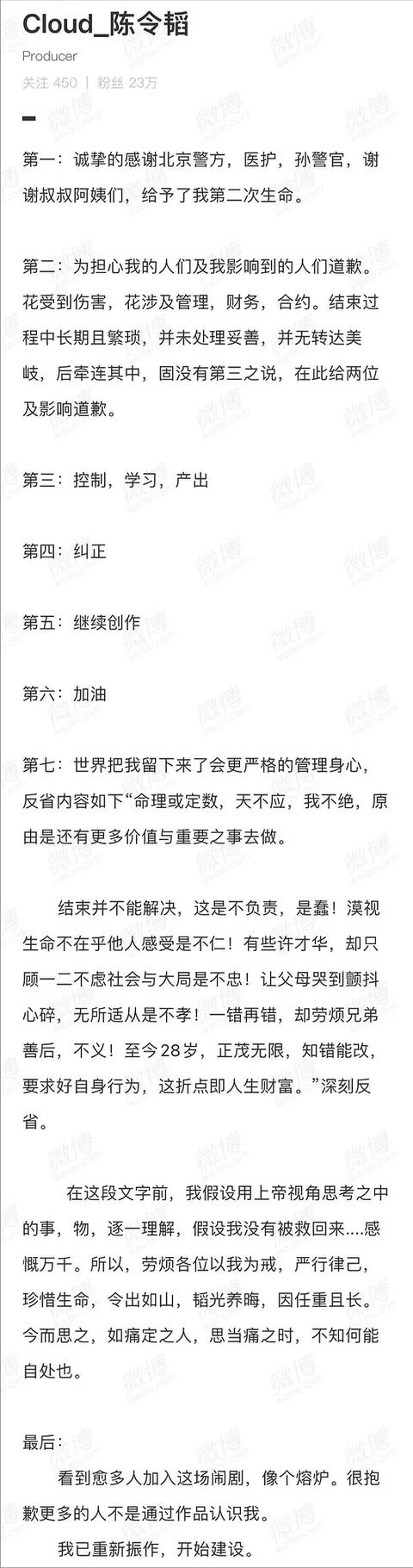 就在27日陈令韬还删除了这条微博,同时将微博私信开了关注30天,看上去“想开”了。