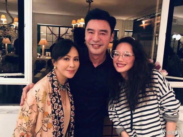 3月2日晚,舒淇晒了一张与刘嘉玲、钟镇涛的合照,钟镇涛站在中间“左拥右抱”,左边是穿着素雅花纹服装的刘嘉玲,右边是戴着大框眼镜、头发“炸毛”的舒淇。