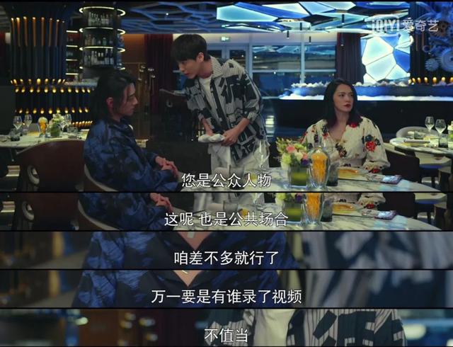 喝多了对着其他客人耍酒疯,不受控制的行为差点被人报警带走,还好被路过的酒店打杂员工侯昊(白宇饰)看见,以“朋友”之名及时给劝阻了。