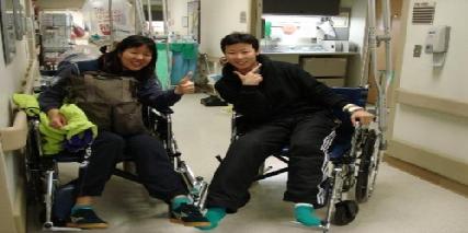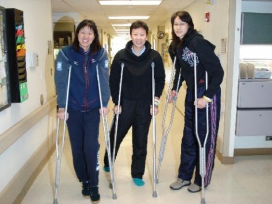 得空时,她们会一起逛超市,三个一米八九的大高个,还都拄着拐,走到哪儿,都是一道亮丽风景线。
