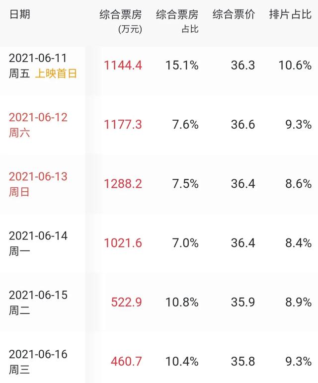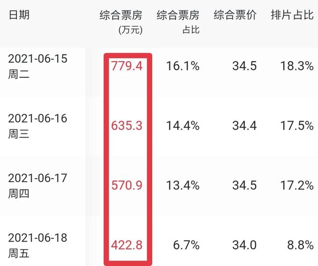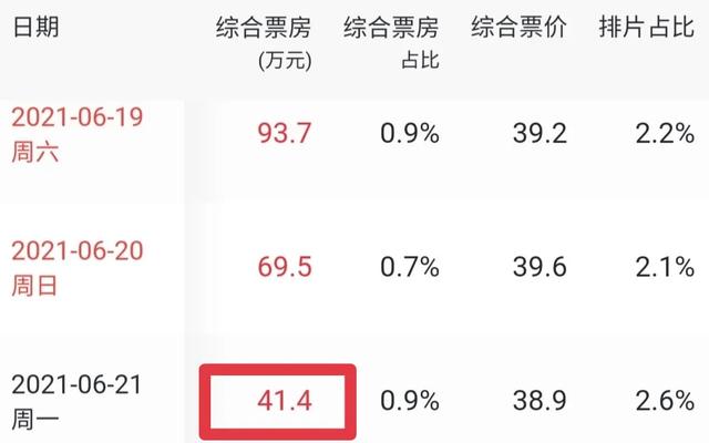 而如今的日票房却低到几乎停滞,6月21日的日票房竟然仅41.4万。