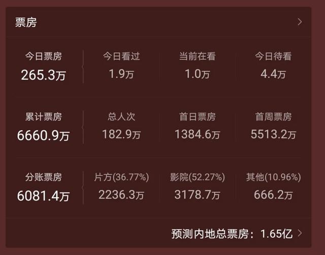 《困在时间里的父亲》上映5天票房977.5万,《普罗米亚》上映18天票房1470万,《只是一次偶然的旅行》上映5天票房60万……