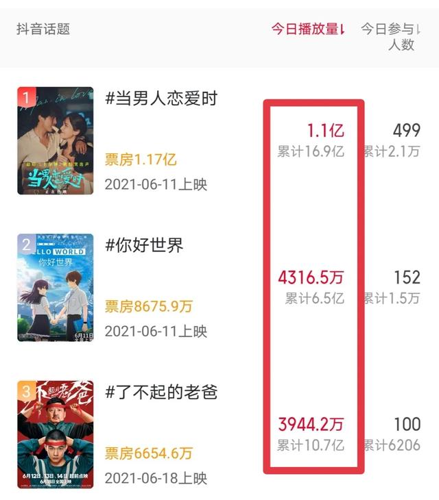 第二,宣传较少。除了评分不如同期上映的电影之外,《热带往事》的抖音话题量和微博讨论量也远远落后于同期上映的电影。