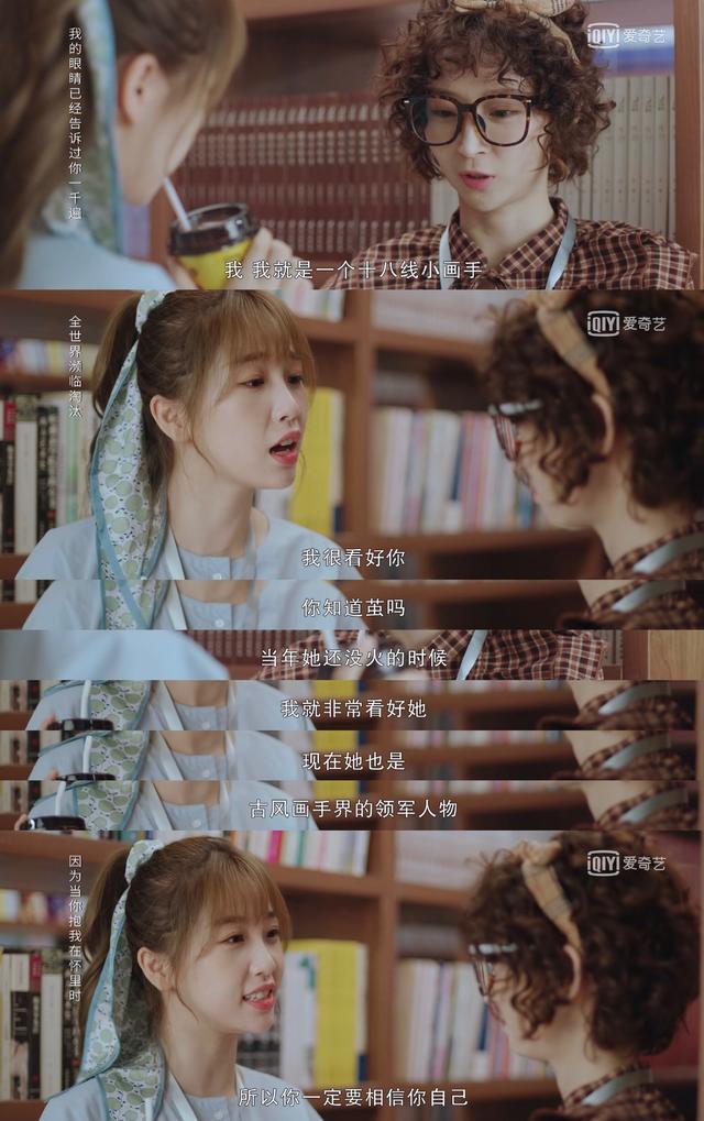 “其实你的插画很有意思,故意不画五官表情,喜怒哀乐全凭读者想象,当年丰子恺也是因为这个风格备受冷嘲热讽,不过好在最终他还是成为了漫画界的一代大师。我很看好你哦,你知道茧吗?当年她还没火的时候,我就非常看好她,现在她也是古风画手界的领军人物。所以你一定要相信你自己。”