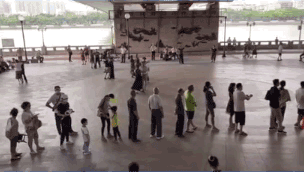 这边测核酸队伍都排到珠江边,隔壁阿公阿婆淡定悠然来一曲广场舞。