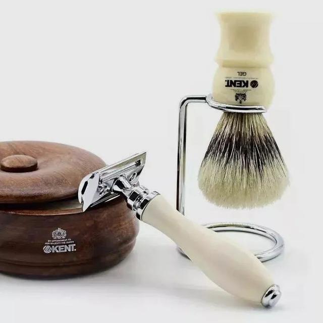 很多女生都对电影中光着上身对着镜子认真刮胡须的男人有种蜜汁喜爱。绅士感十足的KENT手动剃须套装,刀、刷、架,一应齐全。