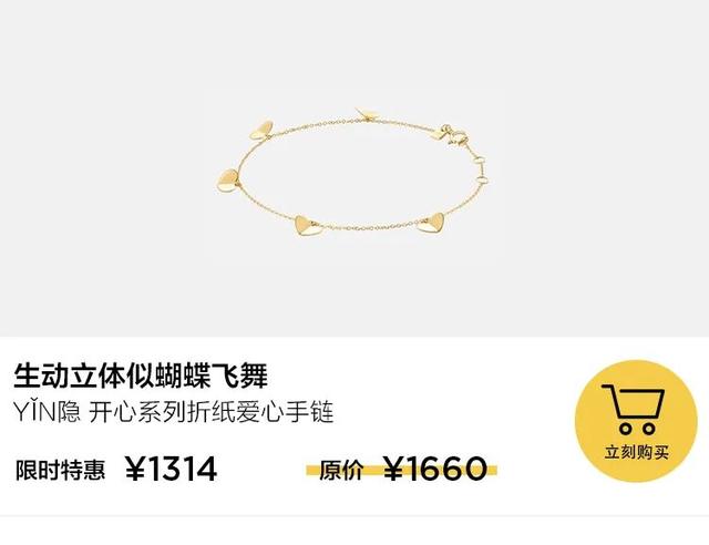 萦绕手腕的金色心叶藤,在举手投足间闪烁温柔光泽,五颗桃心串联成爱你的形状,光影流转的金在手腕处穿梭,唤起隐藏许久的少女心。
