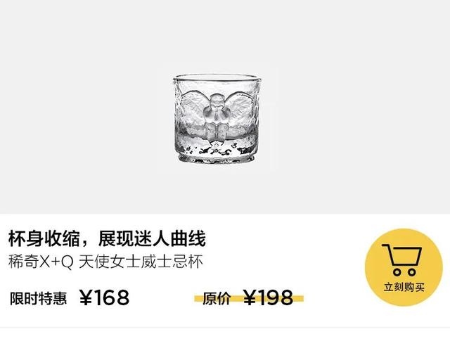由中国著名雕塑家瞿广慈创作的天使威士忌杯,以古典威士忌酒杯为创作基础,杯口的弧度微微向外张开,杯身收缩出“女性”的完美腰线,使之看起来更加优雅迷人,尽显送礼之人的性感和感性。