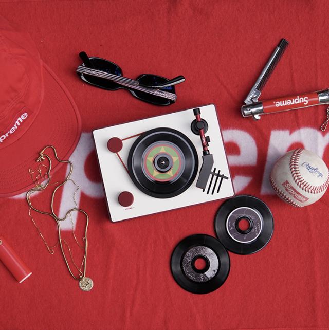 外观设计遵照经典黑胶唱机样式等比例缩小,复古的红白配色一秒带入经典情怀之中,仪式感满满,绝对是让他爱不释手的潮玩礼物。