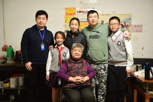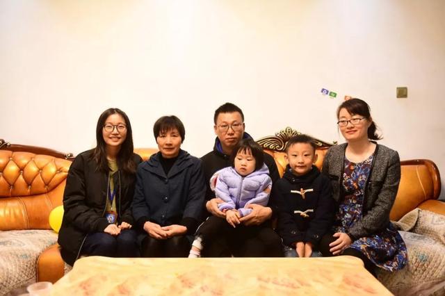 本报记者(左一)与杨芮熙(左二)家人合影。