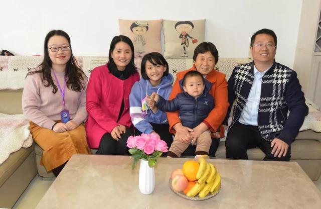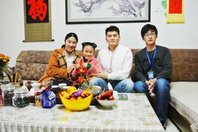 本报记者(右一)和葛庆庆(左一)一家合影。