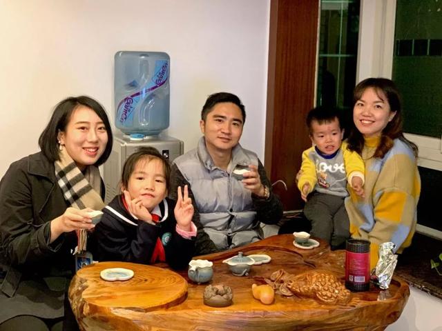 傍晚6点,走进杨芮熙家中。客厅里,开水声扑腾作响,茶香浓郁,暖意十足。杨洋正用开水烫洗着茶具,吴秋平抱着杨芃泽,玩起了智能机器人。书桌上,杨芮熙正在空白的A4纸张上画着天安门。