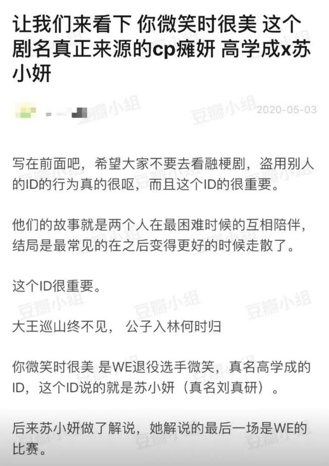 “你微笑时好美、”就是他曾经使用过的ID,而他与LPL的解说苏小妍之间的感情经历,是很多电竞粉丝的意难平。