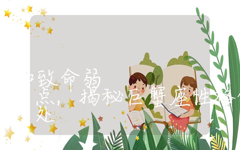 巨蟹座的性格特点包括情感丰富、善良、有同情心和家庭观念,但他们的致命弱点是敏感、情绪化、不够自信和过于依赖他人。这些弱点使得巨蟹座在面对挑战和压力时容易退缩和崩溃。因此,巨蟹座的薄弱之处在于他们的内心容易受伤,情绪难以控制,需要更多的支持和理解。