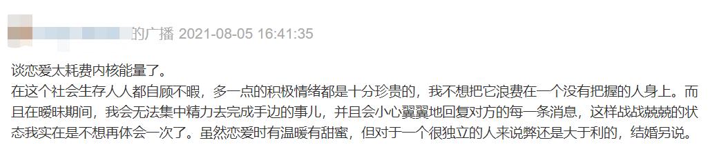 在小组里有看透爱情真相、理性看待两性关系的人,有遭遇情感危机于此寻求意见与安慰的人,也有分手后分享自身心路历程的人……