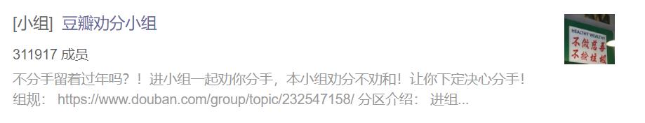 甚至,在豆瓣还有一个“劝分小组”,小北在去年的文章中还专门讨论过,里面有着310000+位“分手大师”,他们的口号就是“不做慈善,不捡垃圾”。