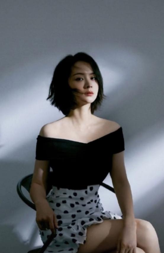 搭配着黑色的一字肩服装造型,邓莎下身用的是一条波点形象的包臀裙装饰自己,裙装在下摆上用了很多的褶皱与荷叶边进行点缀与搭配,这样的高腰的形式,还能让邓莎的身材变得更加的修长一点是一种不错的时尚搭配造型。