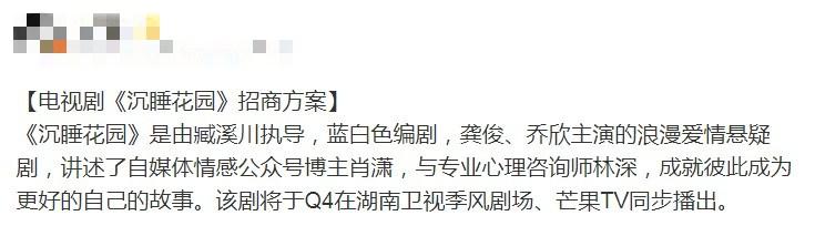 据悉《沉睡花园》目前已经开启了招商,且预计将于四季度上星湖南台季风剧场,网播平台则是芒果TV。这就很厉害了,两位演员上星湖南卫视,作为国内一线卫视,必然吸引更多观众的目光,且这也是刷新国民度的好机会。