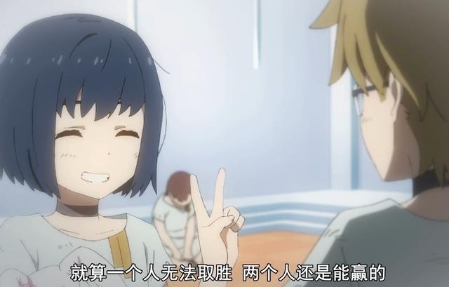 而之后,五郎对广说,“我很懂莓啊,我对莓的感情,也许和你对02的那种特殊感觉是一样的吧”,我去,这真是公开表白啊~,但五郎很“败犬思维”,明明知道自己懂莓,却什么都做不了。嘛,毕竟你不是主人公