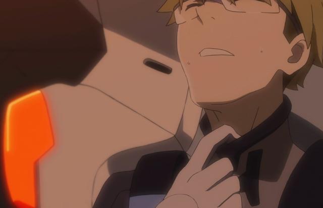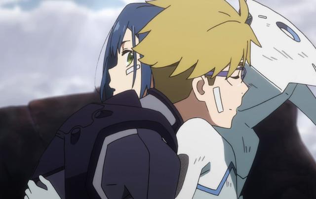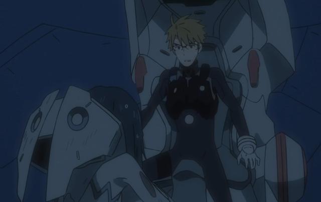 之后对付巨大的叫龙,五郎为了保护莓,将莓紧急弹射出去,自己留在Franxx里,我很想吐槽这设定啊,为什么队友的紧急脱出装置掌握在队友手里,难道不该掌握在自己手里吗?难道紧急脱出装置不该两人一起弹出去嘛?总之有点奇怪。