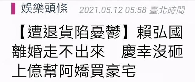 不论怎么说,上一段婚姻都给阿娇和赖弘国带来了很大伤害,阿娇也在新节目中坦言不想再结婚,看起来对婚姻充满失望,而赖弘国也因此患上严重的抑郁症,总而言之希望两人好聚好散早日找到属于自己的幸福吧!#阿娇赖弘国已办好离婚手续#