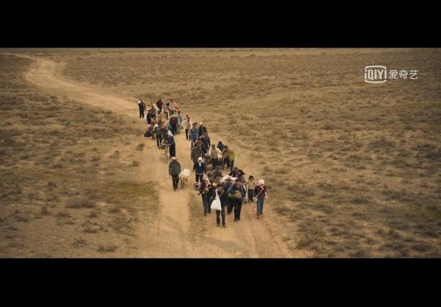 先说剧情,上来就是大事件:本来已经移民到吊庄的涌泉村人,受不了在戈壁滩上开荒建村从无到有的苦,集体跑回了家。主人公新手小干部马得福(黄轩饰演),奉命回老家涌泉村带人回吊庄。吊庄这地方有多苦?先用很简单的一场戏立起来:从吊庄回来复命的张主任,因为吊庄不通车,是扒送煤的火车回来的,见领导时,一身黢黑。