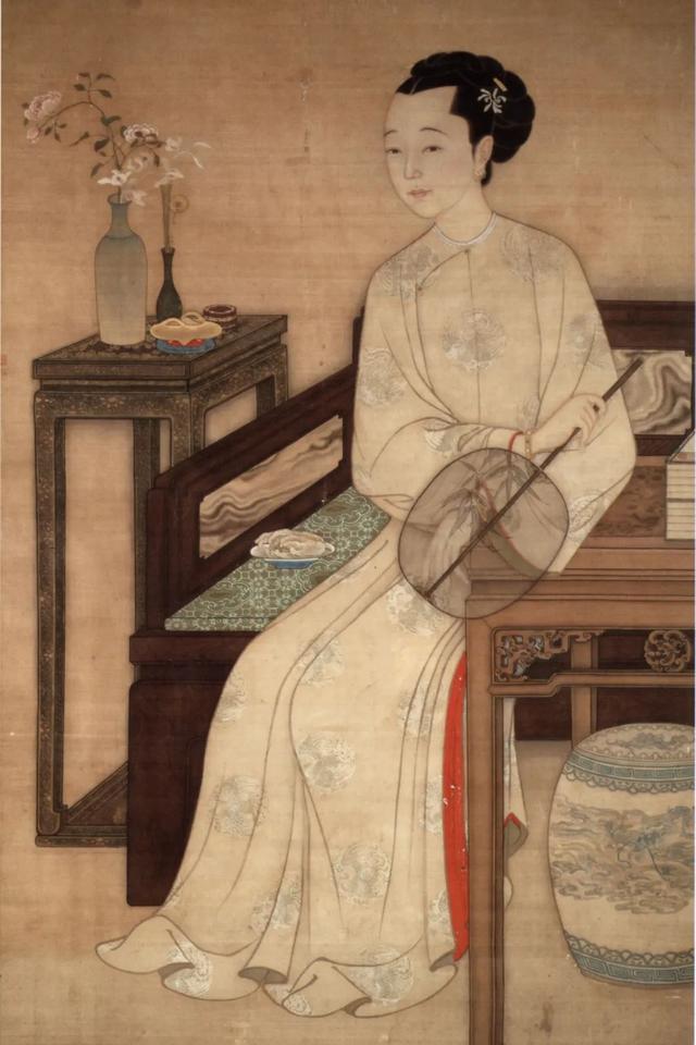 下右:清 莽鹄立《执扇就座仕女图》